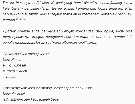 Contoh soal psikotes tes psikotes merupakan salah satu tahap yang harus anda lewati pada saat melamar kerja yang mana kita akan diuji oleh setiap perusahaan. Tes ini bertujuan mengetahui seberapa efektif seseorang dalam melaksanakan tugas dan dalam menyelesaikan berbagai situasi sulit. Yang menurut teori manusia memiliki 16 kepribadian yang berbeda. Tes kepribadian kuesioner adalah sebuah tes yang menilai kepribadian seseorang berdasarkan jawaban jawaban yang dipilihnya terhadap sejumlah pertanyaan yang diajukan kuesioner.