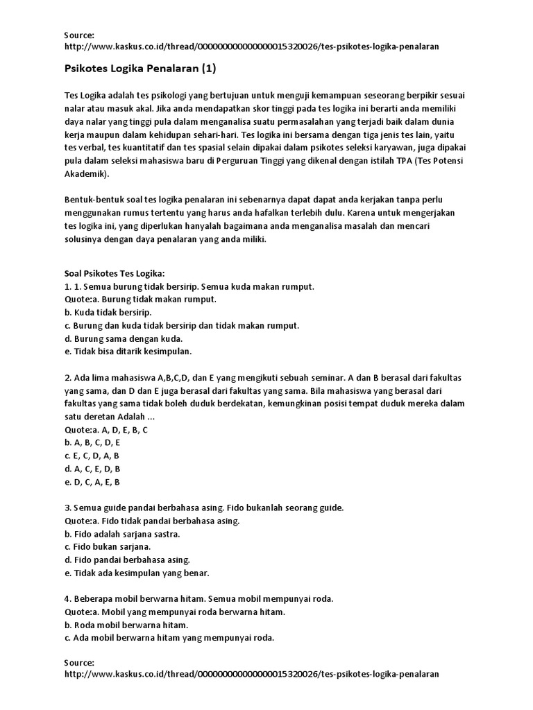 Contoh tes psikotes nalar. Contoh soal psikotes logika penalaran. Hasil tes ini akan menguak karakter dan kepribadian anda dengan lebih detail. Contoh soal psikotes psikotes memang merupakan salah satu tes yang begitu menarik dan luar biasa karena melalui psikotes kita bisa menilai aspek psikis dari satu individu. Contoh soal psikotes ketiga adalah tes logika aritmetika.
